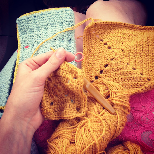 Jeg har endelig fået hæklet karryfarvede lapper og jeg er elsker bare de farver jeg har valgt.